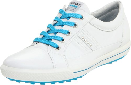 Great golf shoe, June 12, 2012 By This review is from: ECCO Women's Street 1 Golf Shoe (Apparel) I had been having trouble with my back and decided if it was good enough for Freddie Couples it was good enough for me. I asked for these for my Birthday in January and my sweetie was good enough to get them for me. They are perfect. I wear a 7 1/5 to 8 but the size 38 is perfect. So they run a bit small. I have worn them twice a week since January and they are so comfortable I forget I have them on sometimes.Have the white with blue cleats. They are well worth the extra money. I know a couple of other companies are now doing the same kind of shoe, but I found these to be the most comfortable on my back.
